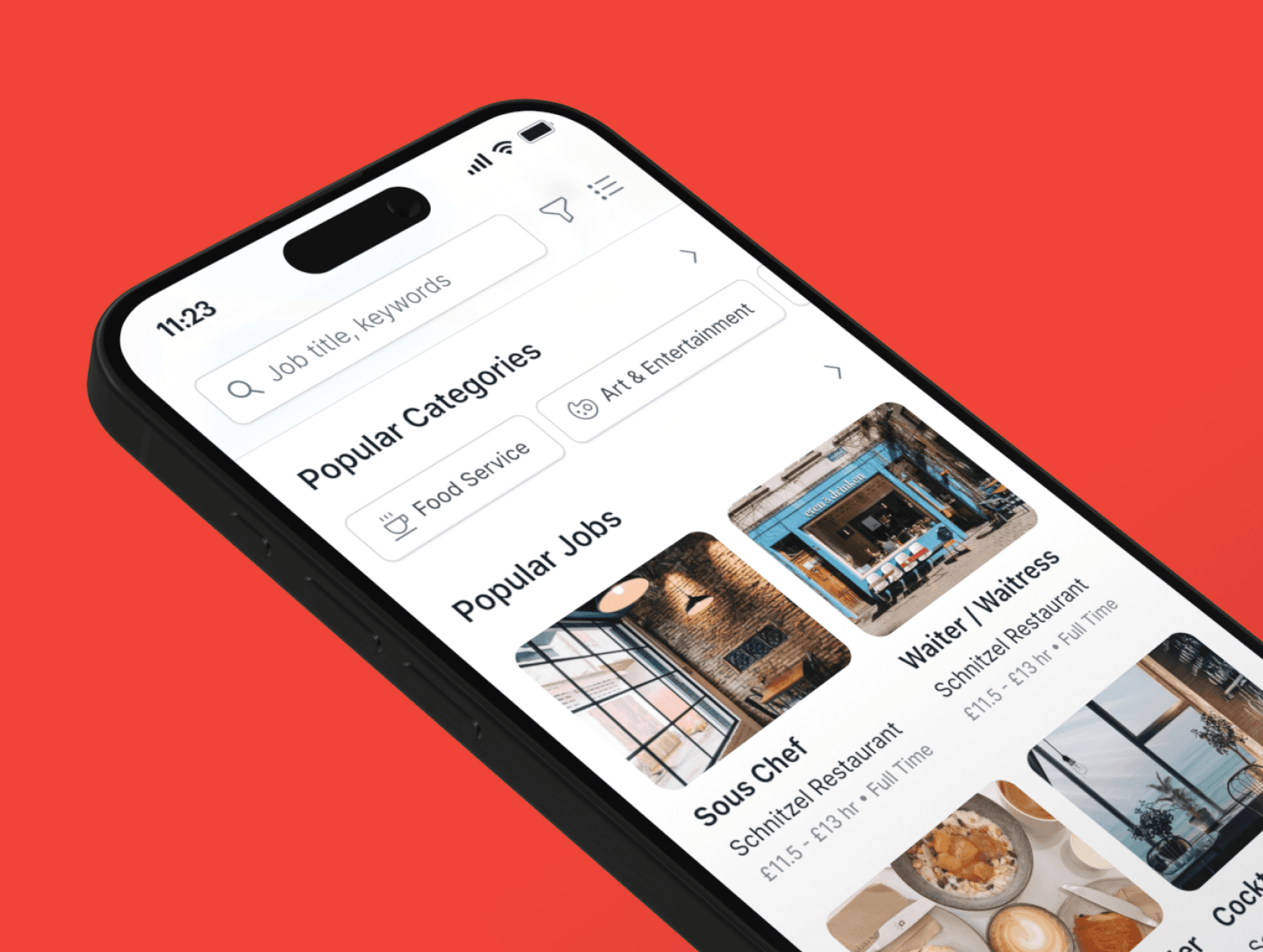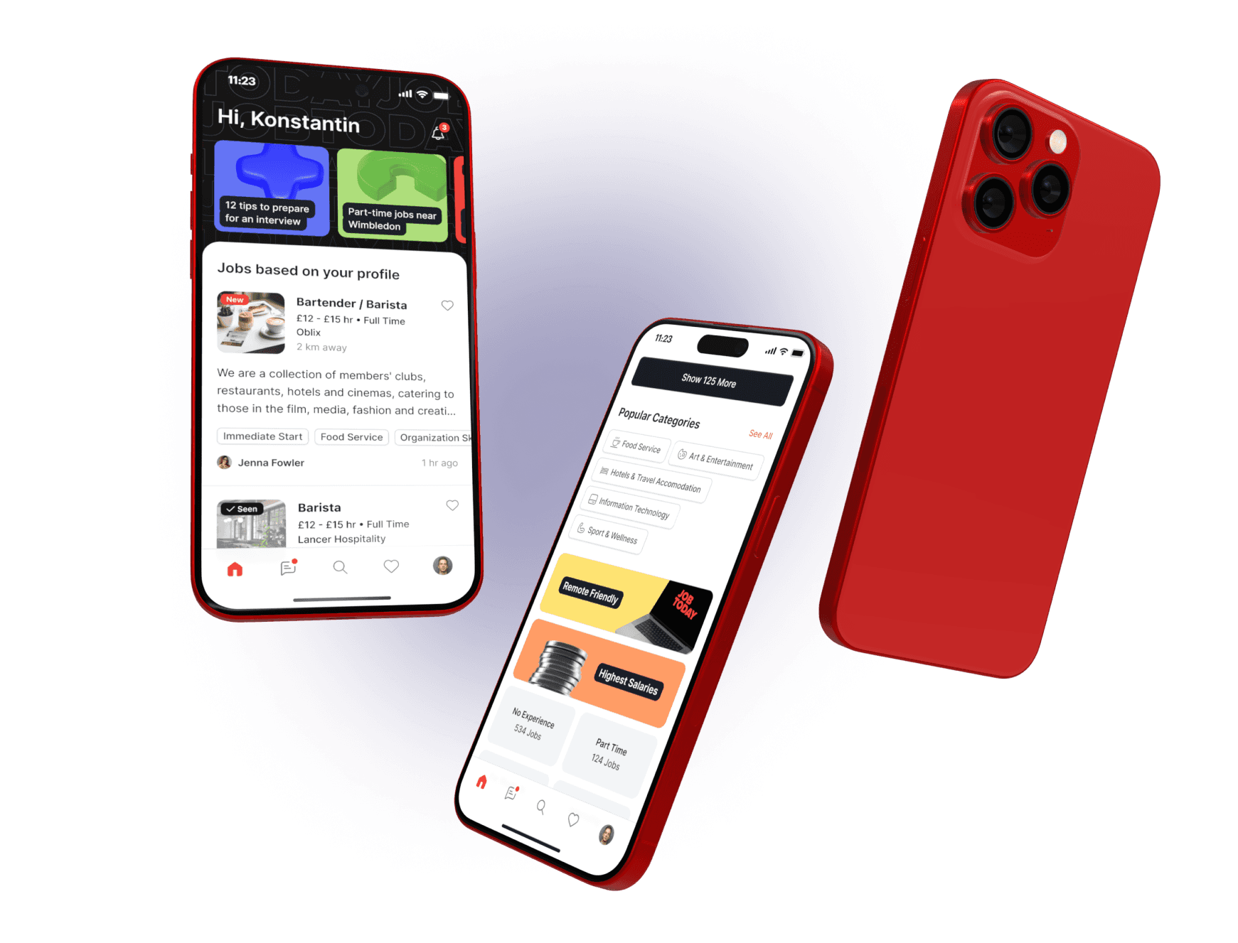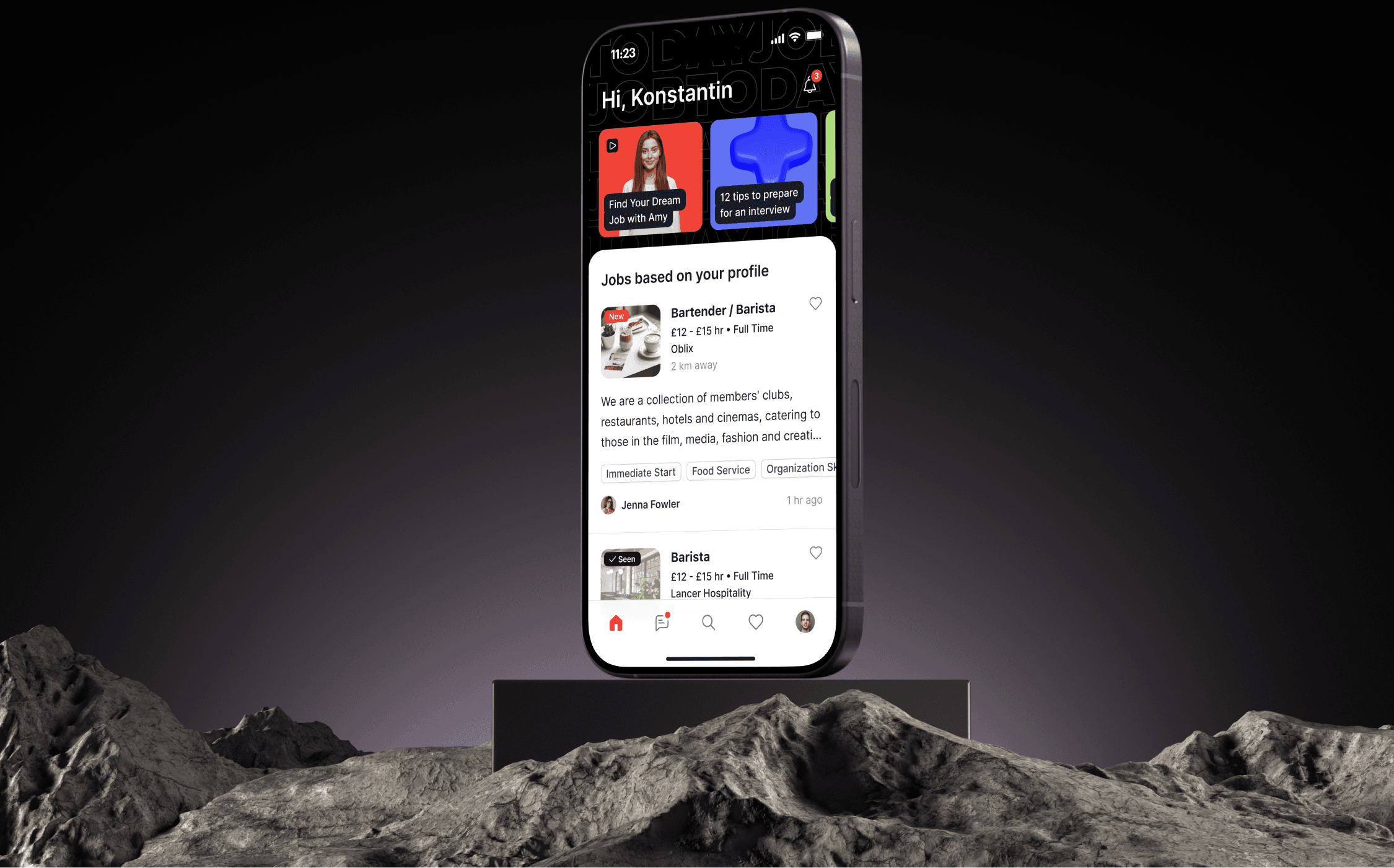 JOB TODAY connects local jobseekers and employers, offering quick job matches within a day. Active in Luxembourg, Spain, UK, company was aiming for US market as well. To expand further, we needed to enhance our interface quality and improve user experience. The app, largely unchanged since its 2015 launch, required a severe update. JOB TODAY aimed to update its brand and UX, focusing on young first-time jobseekers aged 18-24 who are 74% of all our users.
