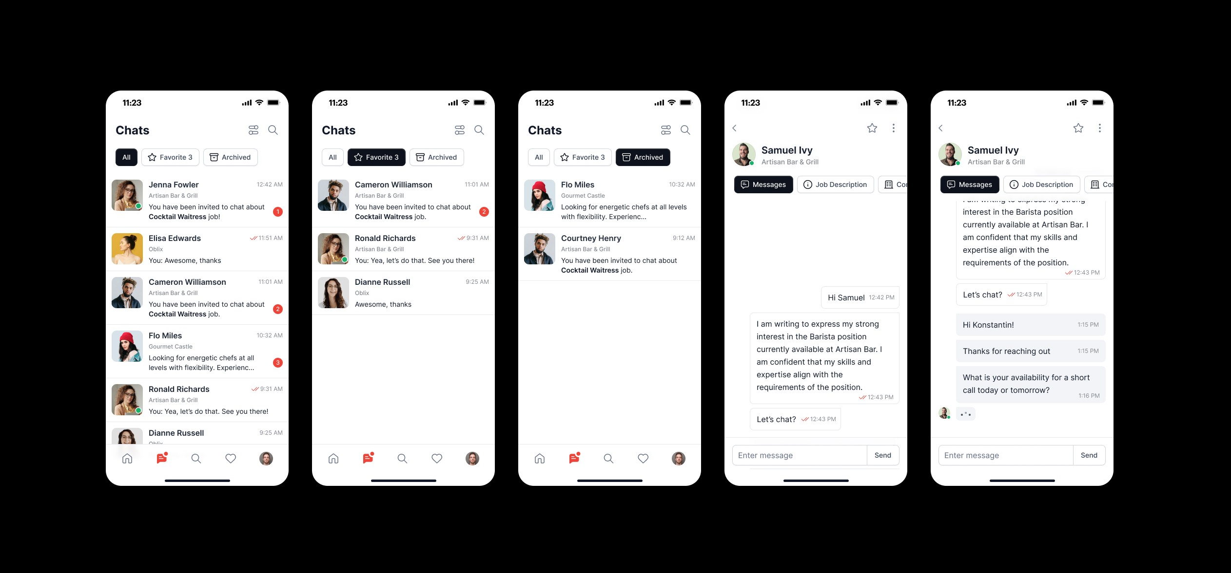 We replaced traditional job applications with chats - a novel approach in our industry. This feature aims to foster a sense of community among jobseekers, encouraging direct communication and mutual support. We've also committed to ensuring each candidate receives feedback within 24 hours of initiating a chat